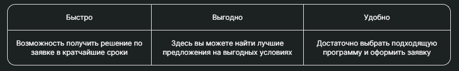 - Честный кредит без обязательных дополнительных сервисов. Для нас важно, чтобы программы для клиентов были эффективны и прозрачны